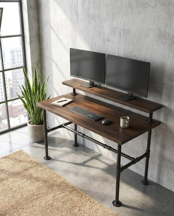 42'' x 28'' Industrial Pipe Table Legs Set, Iron-Cast Finish Piping for Wooden Computer Desk, Office, Home, Rustic Furniture for DIY.